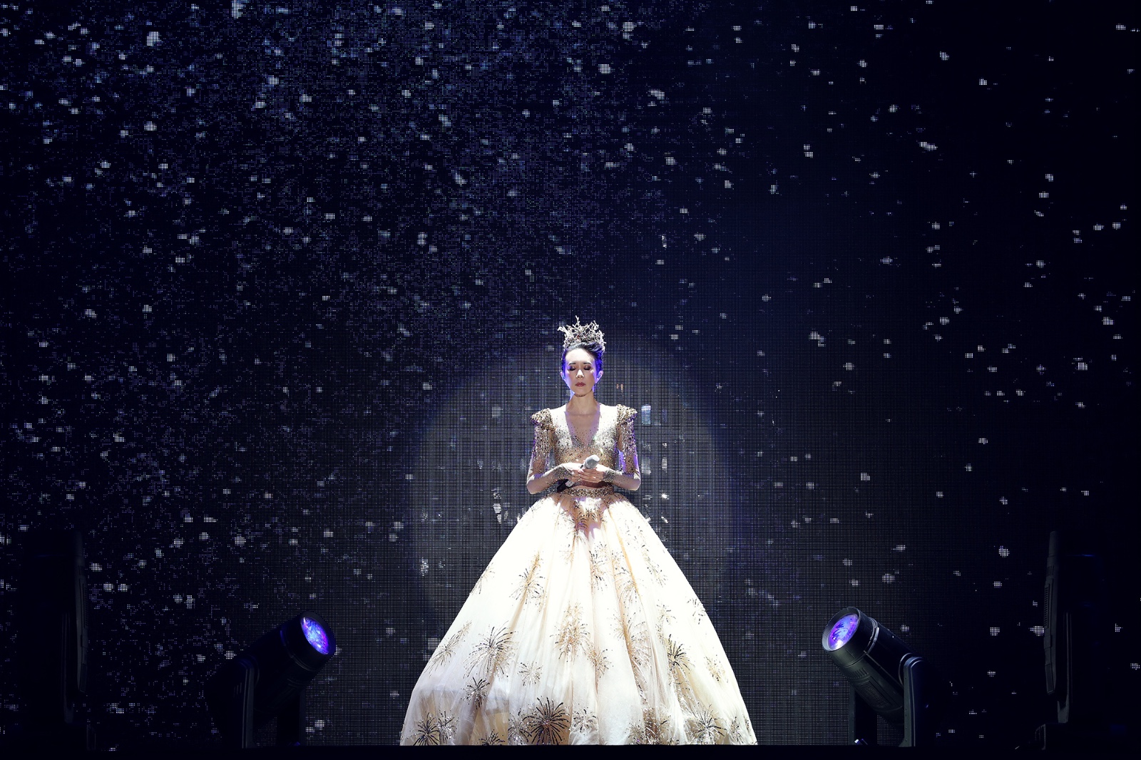 不仅如此,莫文蔚还为演唱会打造多套服装,变换十多种或性感妩媚或优雅高贵的造型,华美的服装和惹火的身材令现场观众大饱眼福。这些服装件件都不简单,皆出自法国、意大利和中国的时装设计师之手,而且每一件“战衣”都经历了夜以继日的讨论、改版,凝聚了很多的奇思妙想。演唱会中“星光熠熠莫文蔚”的时光烟花裙,全身由160800颗捷克水晶与施华洛世奇水晶相融,全手工定制打造,从绘画、花稿、选材、刺绣到钉珠历时四月,23道工序。而莫文蔚也亲自参与其中设计,严格把关,只为呈现完美效果。