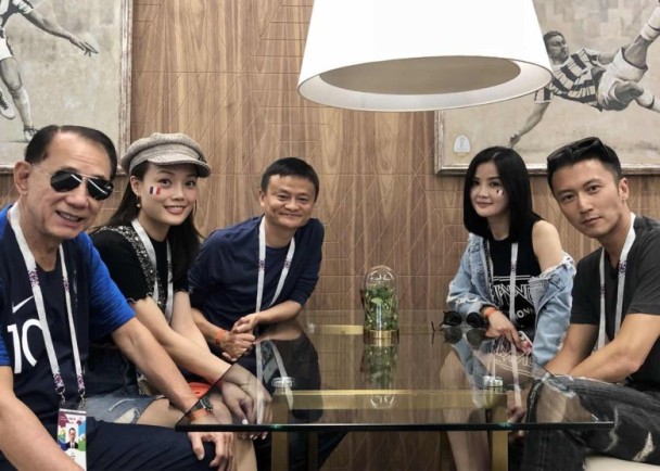 身穿法国队波衫的杨受成原来相约了阿里巴巴集团创办人马云观看决赛,马云更和祖儿、霆锋、阿Sa同框拍照。