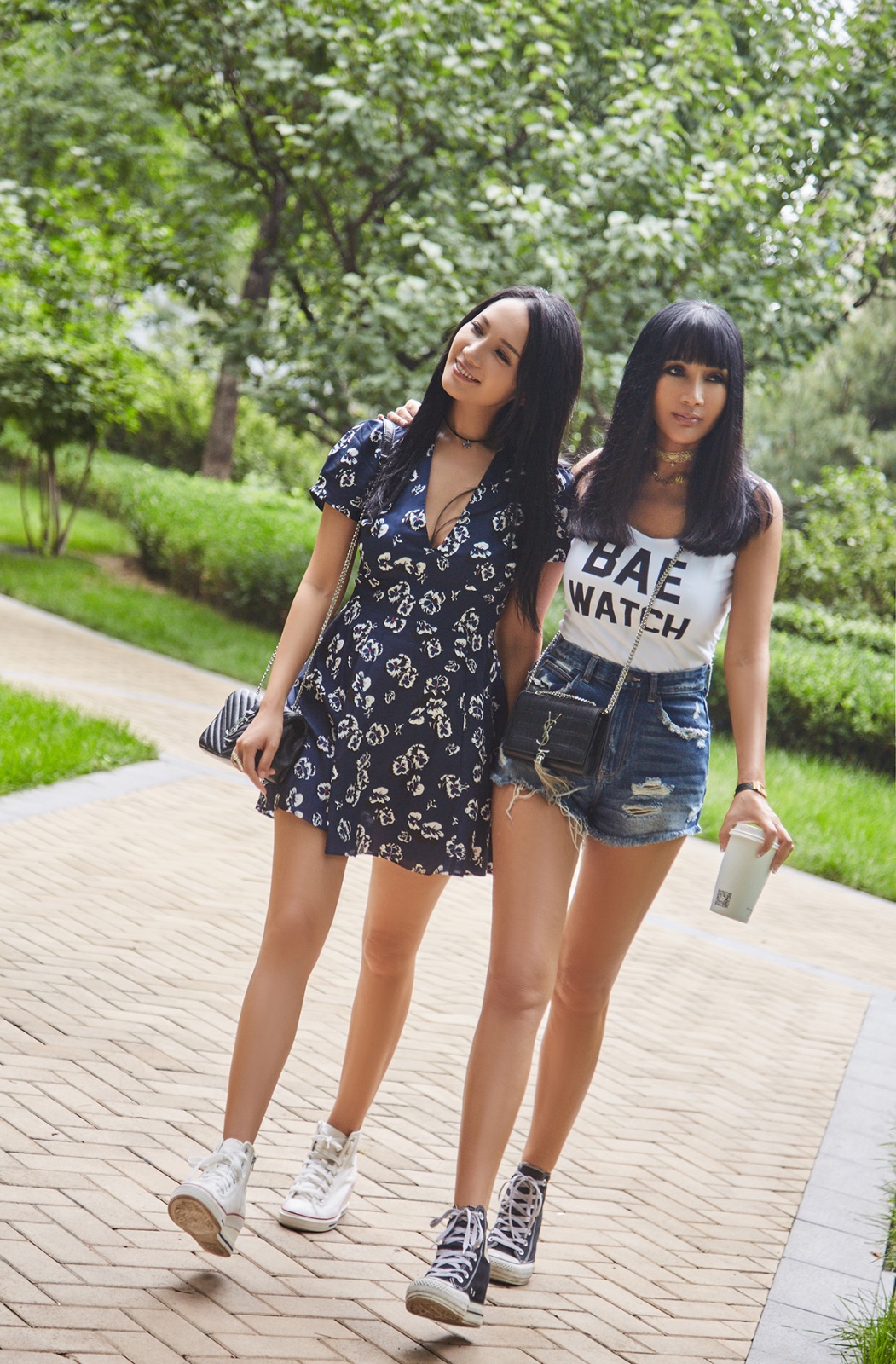 张咪将这个愿望变成现实。如今,女儿已出落成亭亭玉立的姑娘,而咪姐身材依旧如同少女,依旧留着她钟爱的黑色直发。对于同样有着逆天长腿的两位女神,帆布鞋在她们脚下洋溢着与生俱来的洒脱,加上咪姐的白t和牛仔短裤,女儿洛伊的印花连衣裙,青春气息扑面而来的浓烈。和女儿穿同款帆布鞋,背同款包包,一起漫步在夏日的阳光里,用气质躲过岁月的咪姐,无疑活成了每个女人想要的样子!